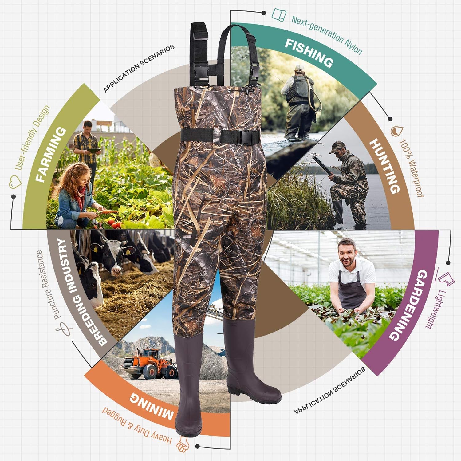 Introducing the ultimate Fishing Waders for Men and Women, perfect for fishing and hunting adventures in any weather condition. These high-quality chest waders are designed with 2-Ply Nylon/PVC material to provide superior waterproof protection, ensuring you stay dry and comfortable all day long.